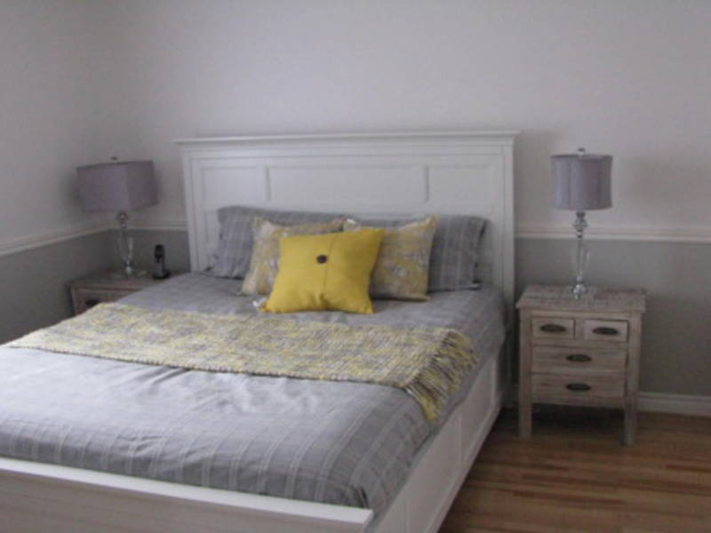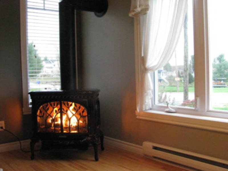 Accommodations including hot tub and patio, outdoor fireplace (wood provided), two large bedrooms including one with a private porch, fully-equipped kitchen, gas fireplace, large yard with gazebo, barbecue, stone patio.