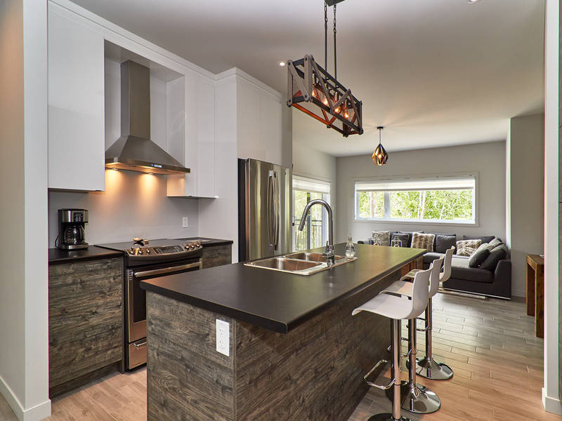 Gorgeous newly furnished 2-storey cottage/condo built in 2017, two covered terraces, patio set and BBQ. Three bedrooms, two bathrooms, two living rooms, well-equipped kitchen, fireplace, washer/dryer 9-foot ceilings on the second floor, heated floors, central vacuum, blinds. Less than 5 km from mont Orford. Time to enjoy the outdoors!