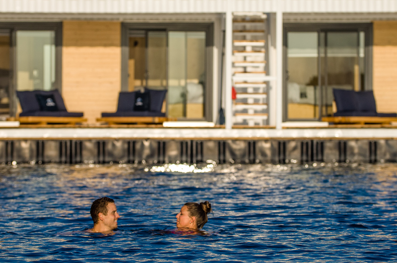 An innovative, eco-responsible and entirely self-sufficient accommodation concept. Flotel consists of rooms on independent, interconnected platforms made from recycled 40-foot containers. Each room has a private bathroom with toilet, shower and sink, a double bed, an extra bed for children, a mini-refrigerator, coffee maker and smart TV. The rooms also feature a private terrace, outdoor seating and a breathtaking view of the bay. Floors are heated in winter. A shared terrace on the roof of each platform is also available to tenants.