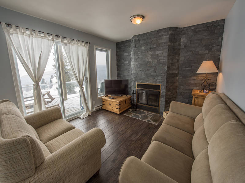 Chalet rénové en 2015. Offre une vue plongeante sur le fleuve et les montagnes, dont l’unique Massif. Composé de deux unités réparties sur trois étages. Peut être loué en totalité ou par unité. Peut loger jusqu’à dix personnes. Un décor féérique ! Un chalet confortable et accueillant !