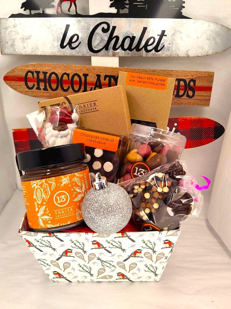 Treize Chocolats est une chocolaterie artisanale et familiale existant depuis 2014. Nous offrons 100 % de nos produits faits à la main. Nous avons tous les produits à base de chocolat, comme les bouchées, les tablettes, les brownies et autres. Nous avons aussi des macarons faits à la main. Nous produisons même nos sorbets et crèmes glacées. De plus, nous produisons même notre propre chocolat, ce que l’on appelle Bean to bar. Vous pouvez nous visiter sur notre boutique en ligne ou dans une de nos deux boutiques à Saint-Jean-sur-Richelieu ou à Saint-Bruno-de-Montarville.