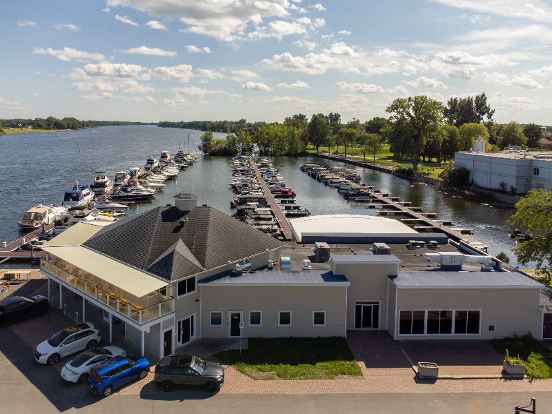 Marina, activités nautiques & resto festif au bord de la Richelieu, à Saint-Jean.Escale idéale pour relaxer, louer un ponton, une motomarine ou un vélo, puis finir la journée en terrasse au restaurant Les Berges de Saint-Jean.