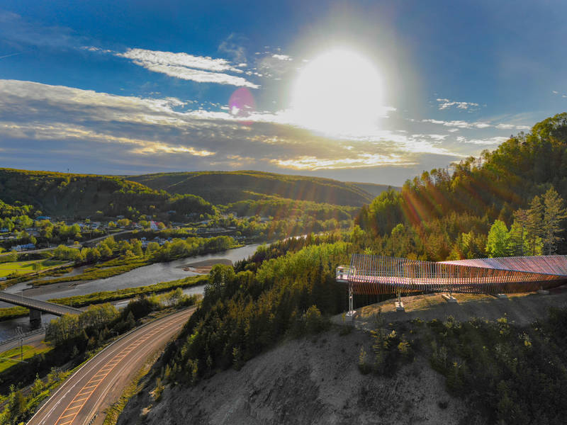 Attraits majeurs de la région de Matapédia-et-les-Plateaux, dans le sud-ouest de la Gaspésie, les deux premières structures à l’architecture exceptionnelle offrent aux visiteurs une vue spectaculaire sur les paysages de monts et rivières.